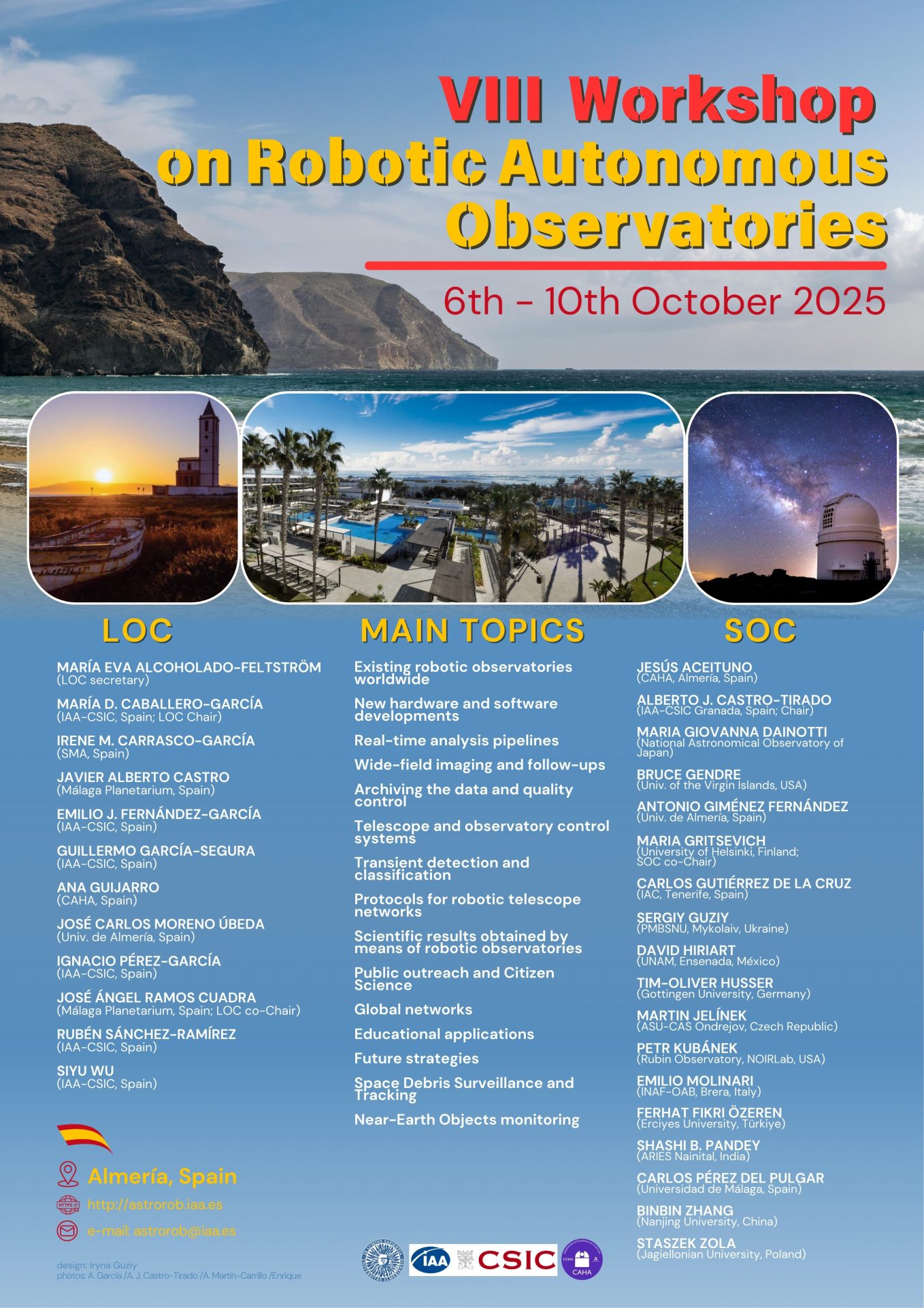 The workshop will also highlight the increasing importance of space debris surveillance and tracking, the observation of Near-Earth Objects, the role of robotic observatories in public outreach and education, and their contributions to open science.