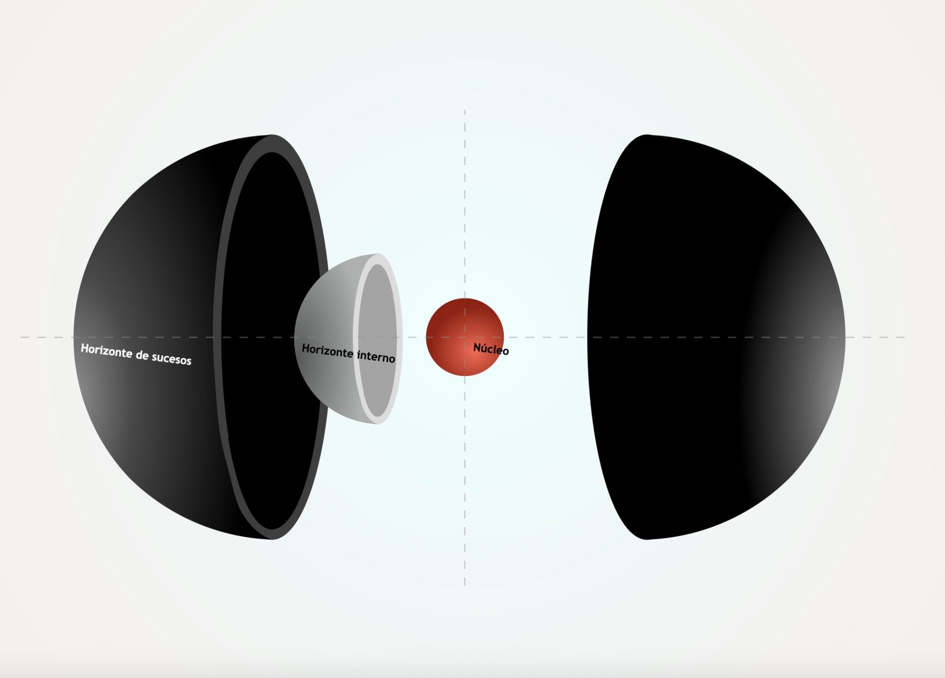 Esquema de la estructura estática de un agujero negro esféricamente simétrico. Créditos: Raúl Carballo-Rubio (IAA-CSIC)